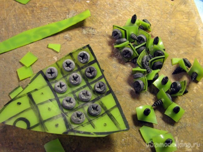 Я выяснил, что удобнее, вначале ввинтить все саморезы, а только потом, нарезать винил на квадратики.