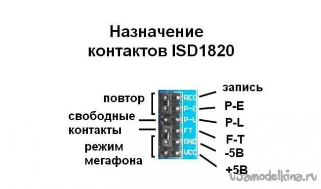 Принципиальная схема звукового модуля ISD1820.