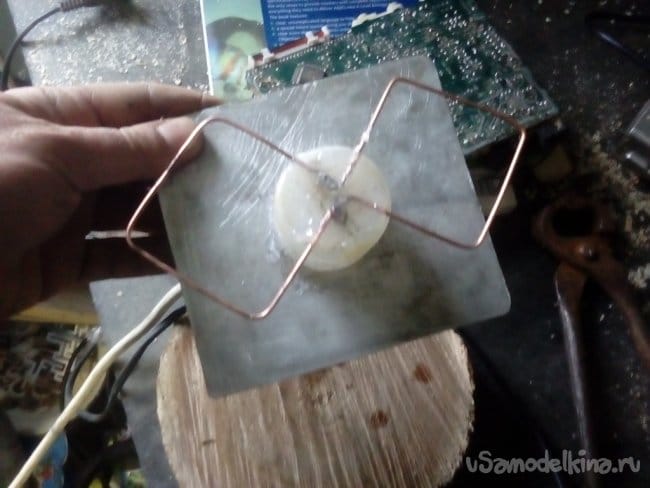 Сделал вот такую антенну по инструкции, описанной здесь. Только вместо фанеры у меня алюминиевый лист.
