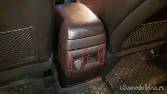 2) Теперь опускаем "кармашки" и дёргаем на себя посильнее корпус подлокотника с тыльной стороны. Он держится на шести клипсах: