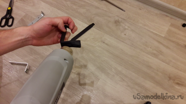 8) А для того чтобы детали сочетались с салоном и приобрели нужный цвет, воспользуюсь термоусадочной трубкой. В отличии от покраски, термоусадочная плёнка придаёт им матовое, прорезиненное покрытие, которое даёт им ещё и дополнительную жёсткость. Заодно она закрывает лишние отверстия, которые не будут задействованы.