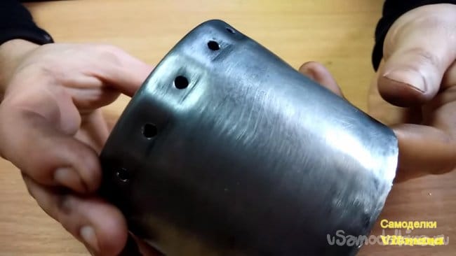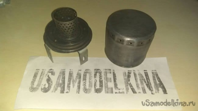 На ее место будет устанавливаться свечка (сухой спирт) и накрываться сеткой с крышкой, которую мы сделали ранее. К донышку с четырьмя отверстиями прикручиваем металлические уголки на винты М6 с гайками.