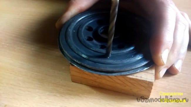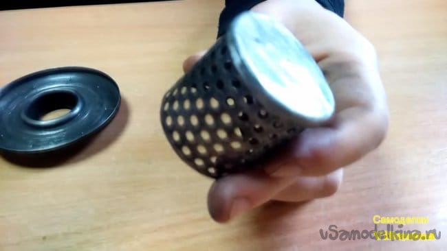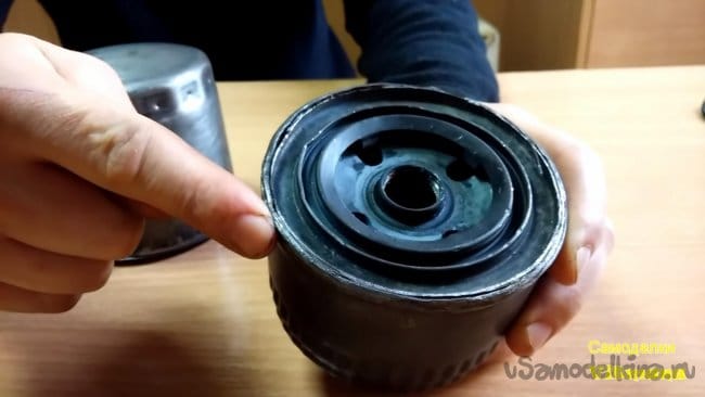 В масляном фильтре имеется второе донышко, но без отверстий, поэтому их нужно сделать по образу и подобию, как в первом.