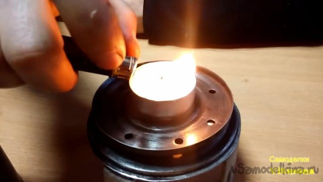 Свечка внутри горит, само горение поддерживается за счет наличия отверстий в крышке и донышке, для лучшего обогрева советую использовать сухой спирт, тепла от него в разы больше нежели от маленькой свечки.
