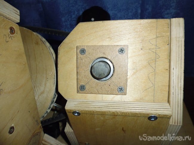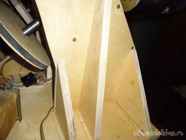 6. Прикручиваем шурупами большую боковую и заднюю стенку к подставке привода.