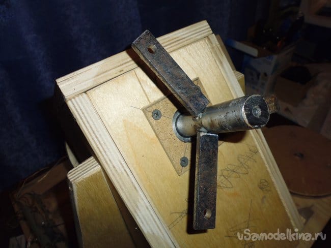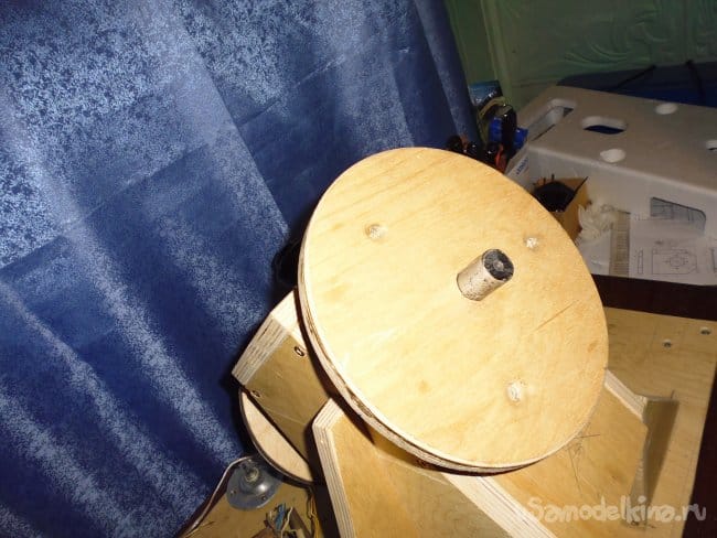 5. На малый шкив по разметке шурупами крепим пальцы привода изготовленные из трубки.