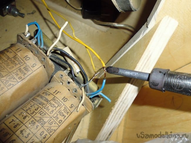 3. К сожалению, у меня был трансформатор с выходом на 24В, поэтому я подключил вместо диодного моста один диод и питаю двигатель через дроссель.