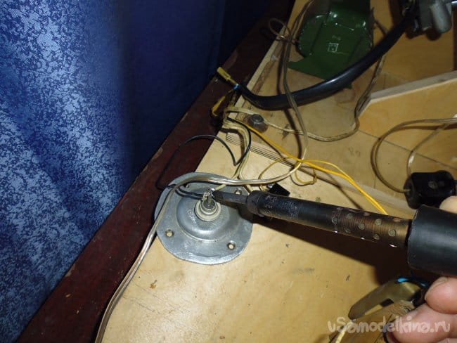 2. От диодного моста через выключатель провода припаиваем к двигателю.