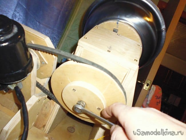 5. Надеваем клиновой ремень на большой шкив.