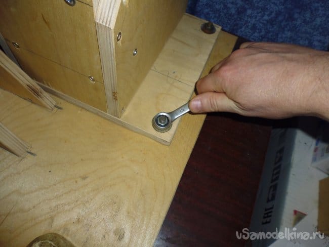 5. Прикручиваем шурупами боковые, задние и передние стенки вместе, проверяем плавность вращения оси.