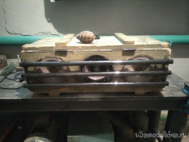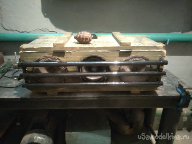 Что для этого нужно : дешёвая долгоиграющая китайская акустика 2.1, синтепон из по ношеного пуховика вашего друга, поролон вырванный собакой из дивана, диффузор на сабвуфер из 40ой трубы взятая у сантехника в соседнем жко, пол дюймовые трубки на бампер там же! старый ящик из под противогазов страны советов!