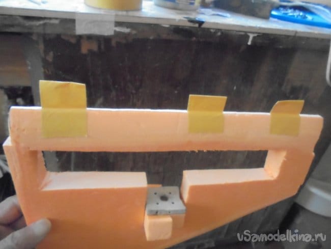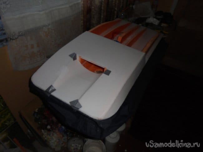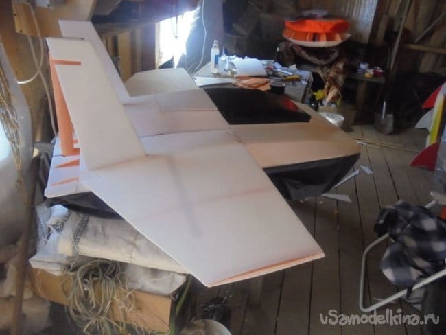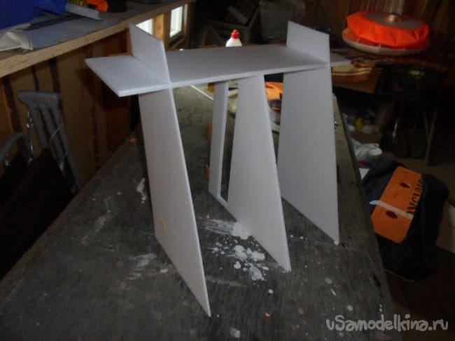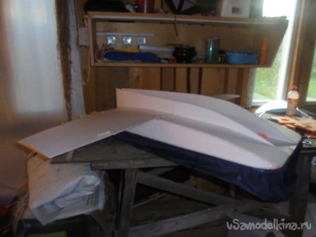В собранном виде, до склейки. Видны вставки двухстороннего скотча для крепления РВ иРН. Готовится заготовка для моторамы.