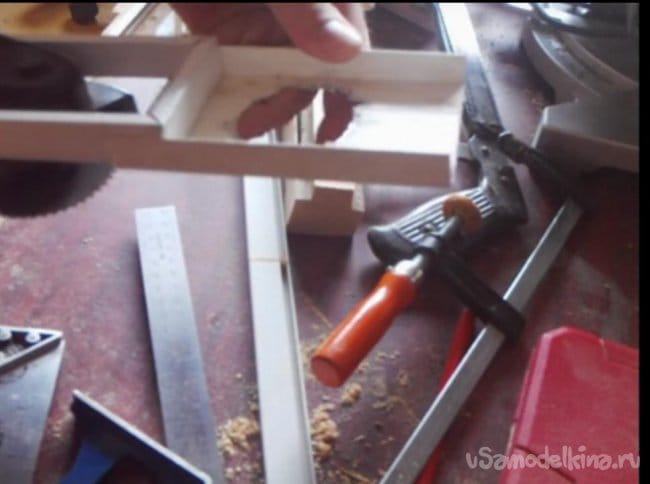 Все бы ничего, но разобранные старые оконные рамы в сечении имеют очень сложный профиль, скажу больше у них все грани не параллельны противоположным. Состругивать их до правильного параллелограмма привело к тому, что получался брусок 20 на 20 мм при изначальных размерах почти 50 на 50 мм. По этому я решил минимизировать потери и довести бруски до фигуры которая в сечении имеет ромб или усеченную пирамиду. И тут возник другой вопрос как их клеить, что бы они не разъезжались. Самое простое - это сделать в них паз или отверстие под шканты. Есть еще вариант купить очень дорогую фрезу и не менее дорогой фрезерный станок к ней и уменьшив еще бруски, сделать так что бы они складывались как вагонка. Но нет это вариант не подходит для б\у материала с кучей гвоздей, шпаклевки и краски.