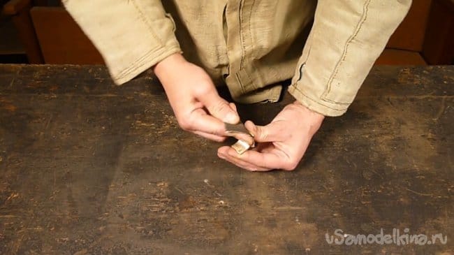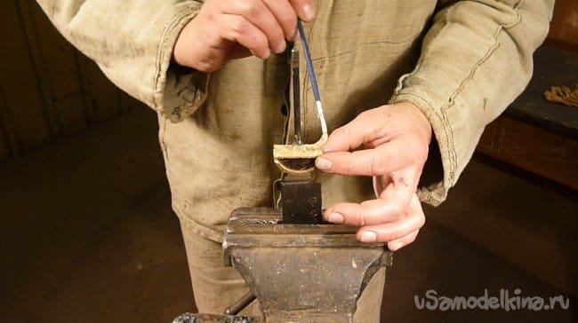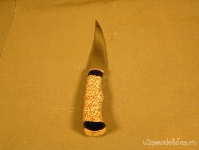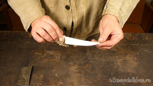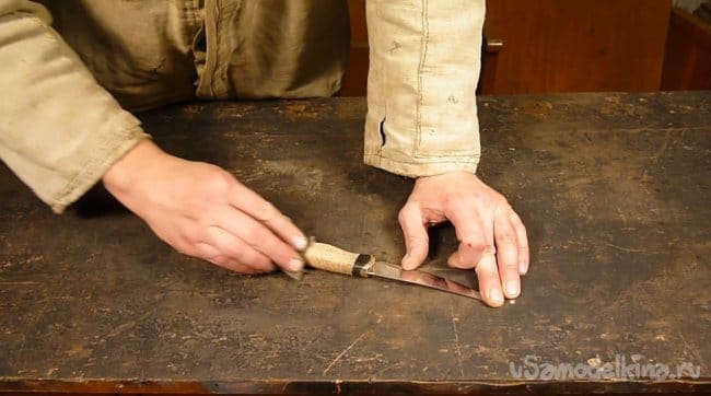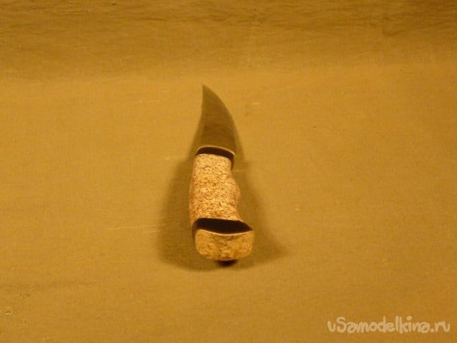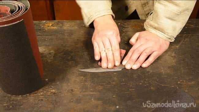 Зачищаем наждачной бумагой и проверяем посадку клинка.