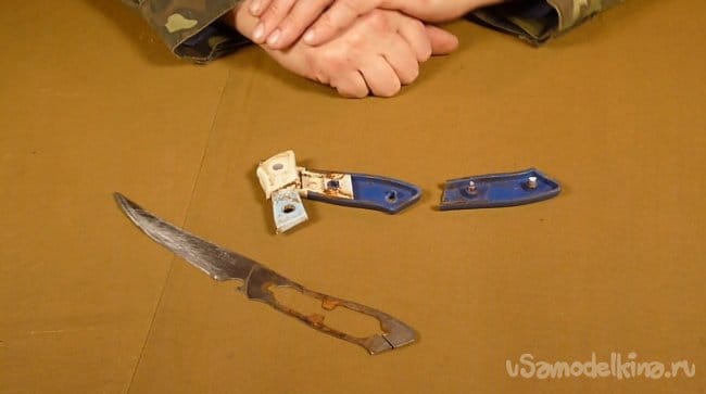 Ничего особенного, но заказчик говорит что железяка у этого ножа нормальная, заточку держит сносно, и вообще ему для походов за грибами сойдет. Ну что же, дадим этому старичку вторую жизнь, сделаем ему новую рукоять, вместо сломавшейся старой, супер экономной.