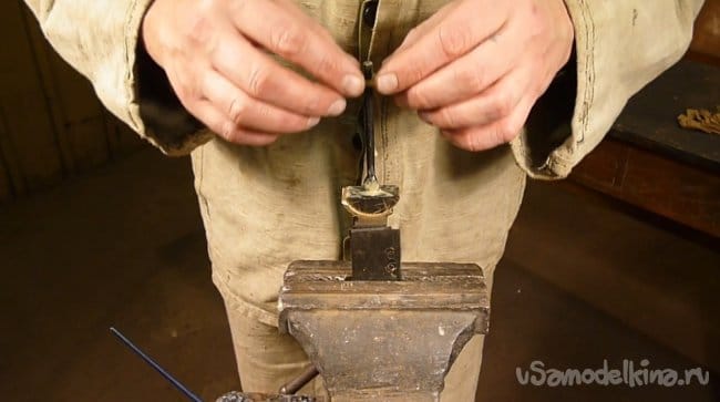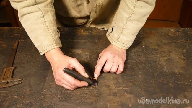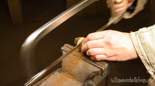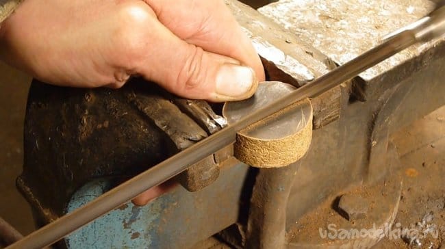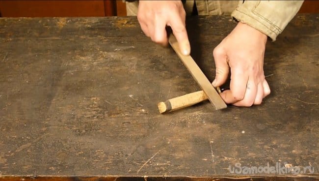 Далее обрабатываем рукоять напильником и наждачной бумагой.
