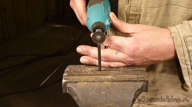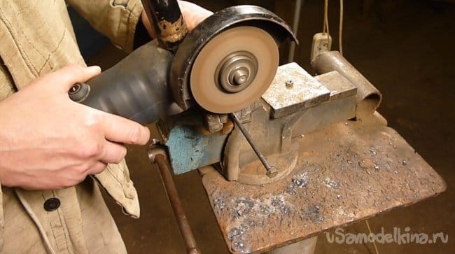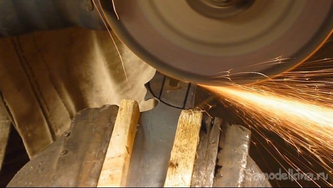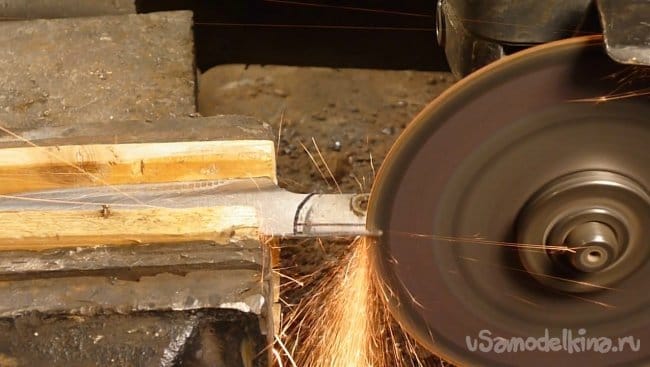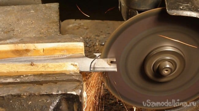 Для начала подготовим клинок к сварке. для этого обрезаем обломок болгаркой формируя хвостовик клинка.