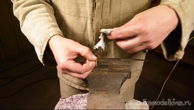 По центру прямоугольников пробиваем отверстия трубкой подходящего диаметра.