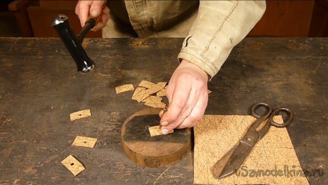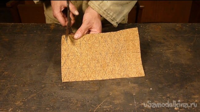Саму рукоять сделаем из листовой пробки. Нарезаем прямоугольники 3 на 1,5 см.