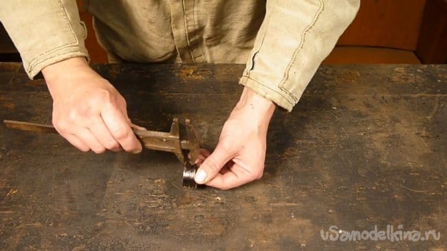 Перед сварочными работами, сделаем пару заготовок для рукояти. Отрезаем эбонитовую шайбу толщиной 1 см.