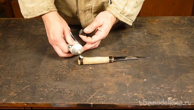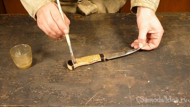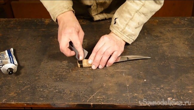Собираем рукоять, склеиваем все детали вместе на эпоксидную смолу.