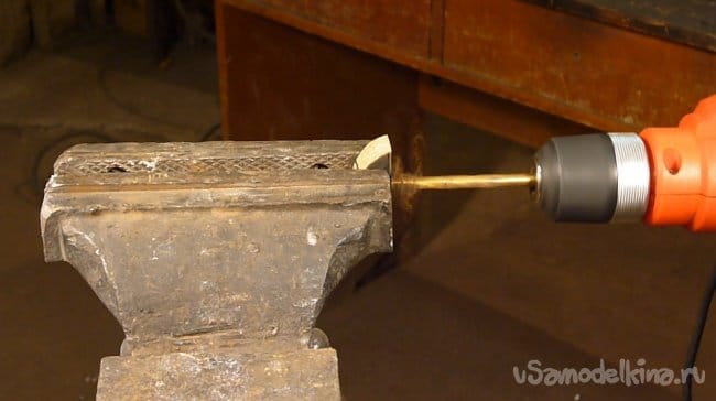 В глухом отверстии нарезаем резьбу. Это будет навершие ножа.