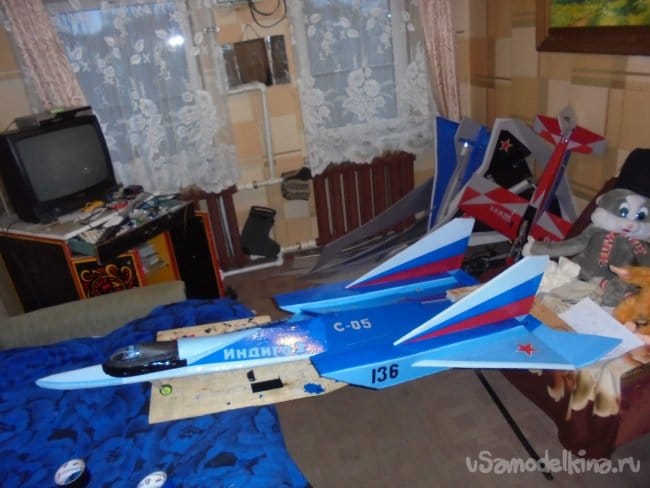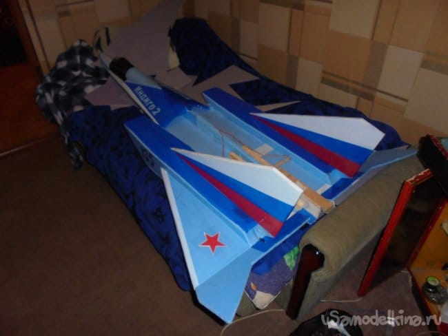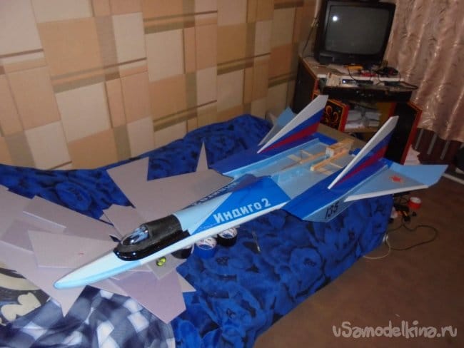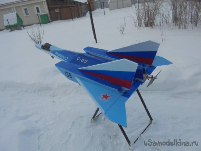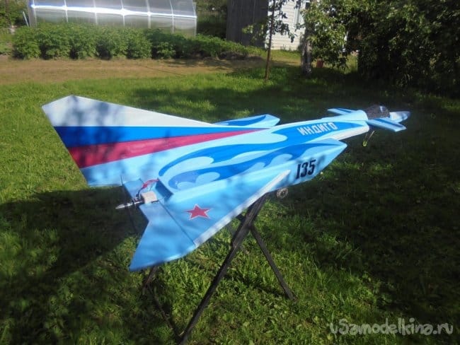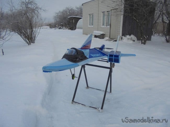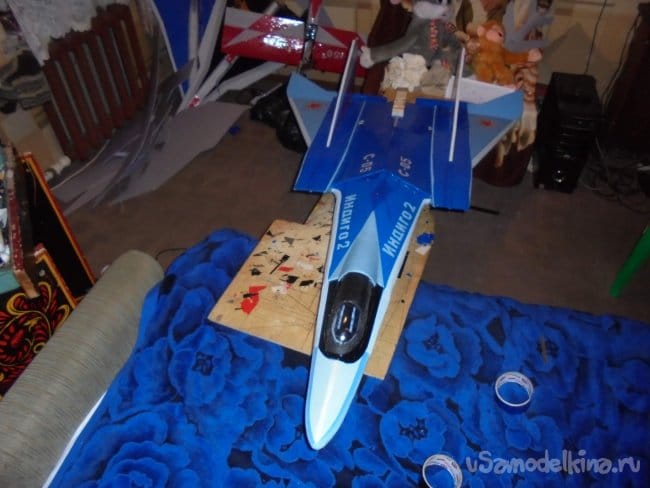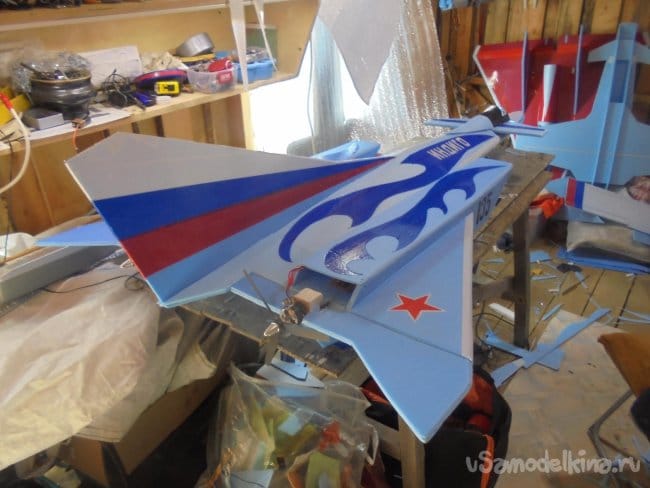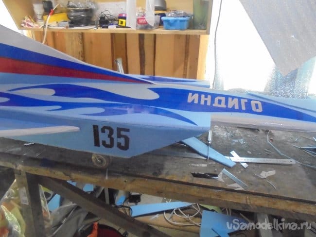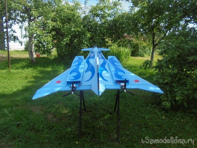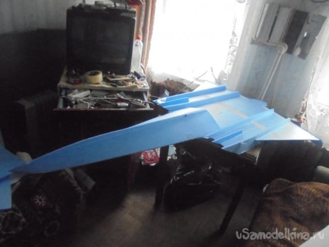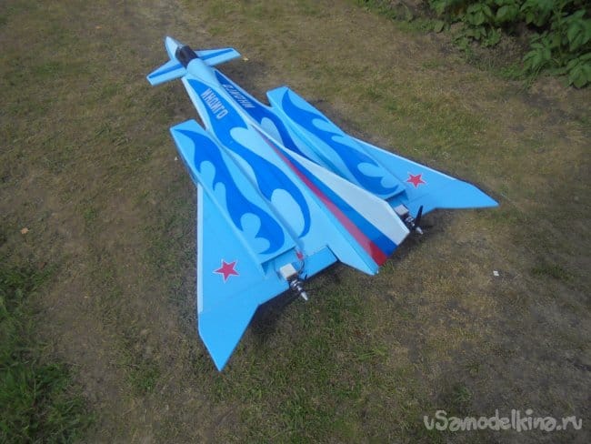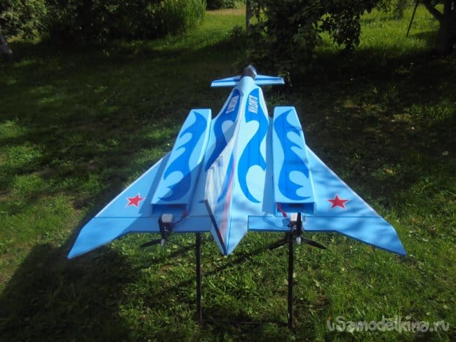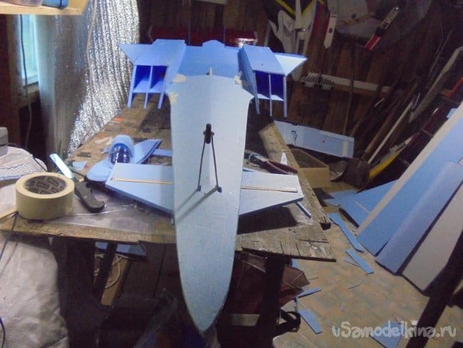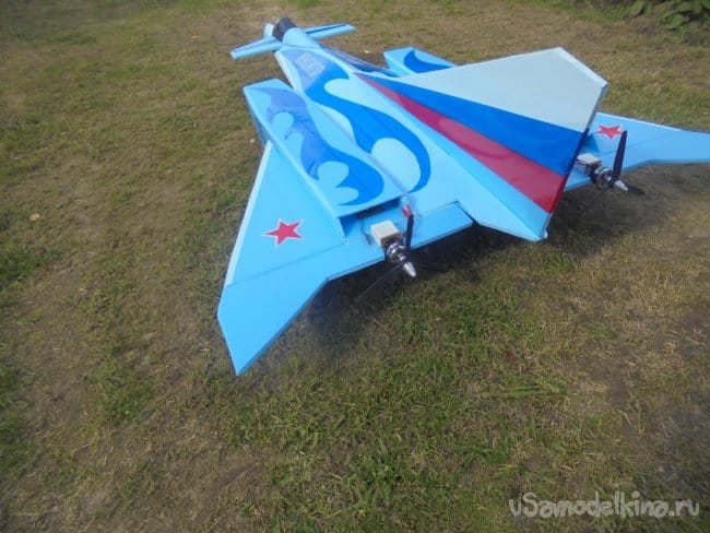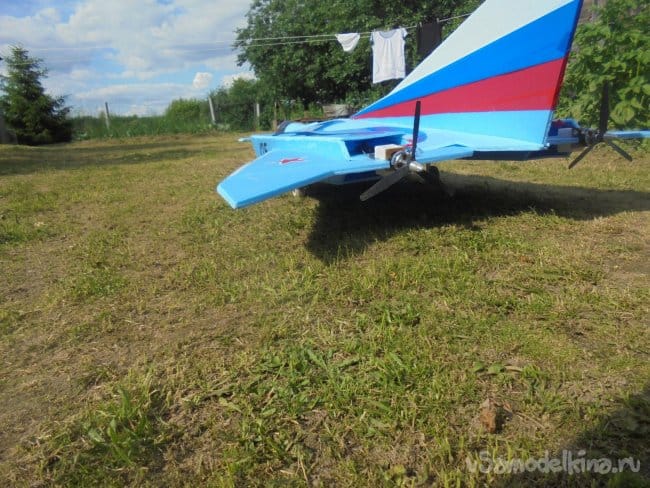 После нескольких полётов , я решил немного реконструировать модель. Поставил один мощный мотор и два киля, для увеличения курсовой устойчивости.