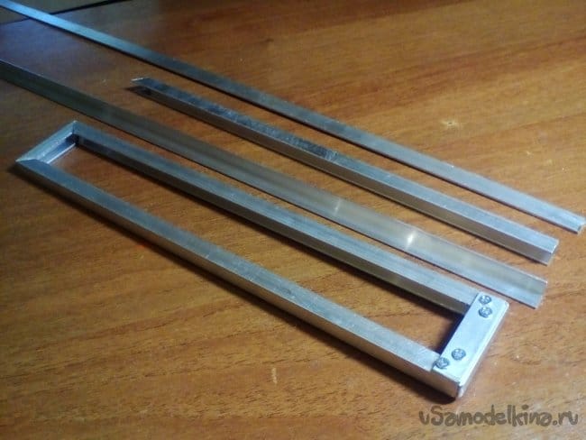 Любой проект начинается с техзадания. в голове у меня сложился образ рамного джипа с простым корпусом, полностью независимыми подвесками и для начала с задним приводом. С электроникой на тот момент я еще не определился, поэтому старался делать так, чтобы можно было впихнуть любую. Начал естественно с рамы. это пожалуй было самое простое. Зашел в магазин стройматериалов и купил профиль разного сечения шириной 10мм. Из П-образного профиля, пропилив где нужно вырезы и согнул раму. Концы скрепил винтами.