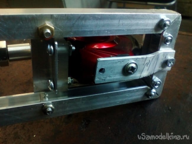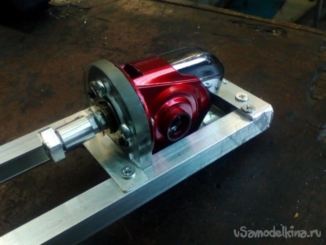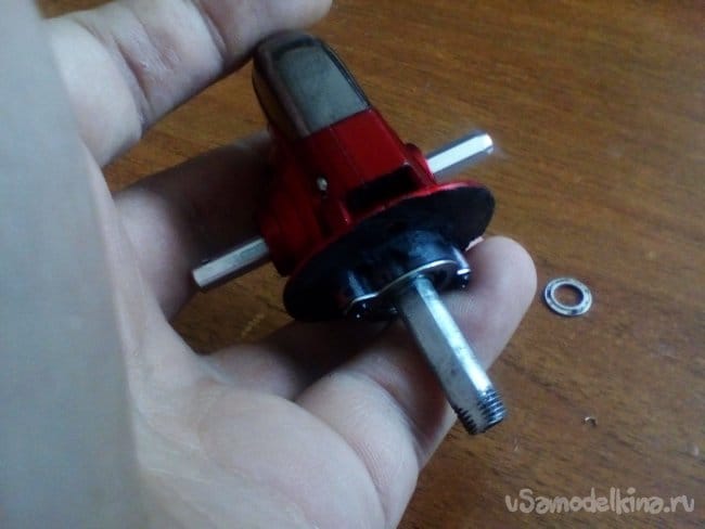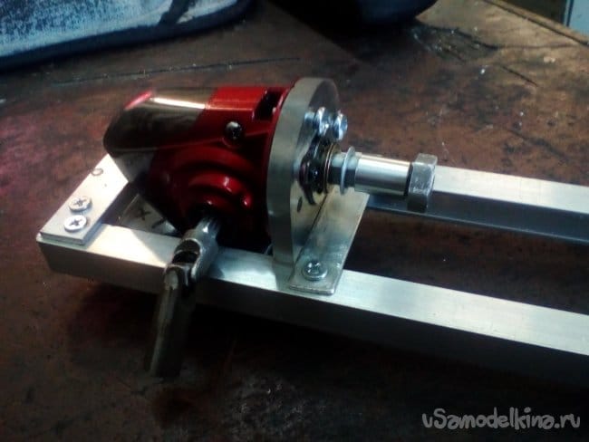 Просверлил крепежные и осевые отверстия и собрал все в одно целое. Получилось громоздко, но мощно!) Да, про подшипники тоже не забыл.