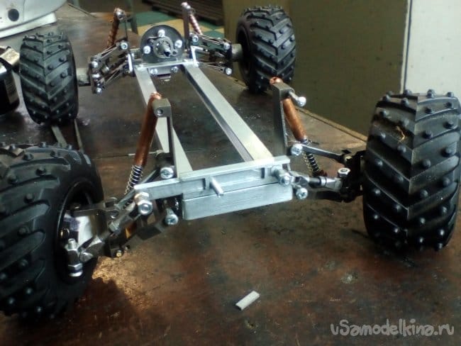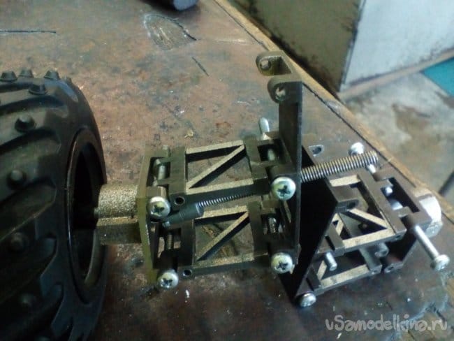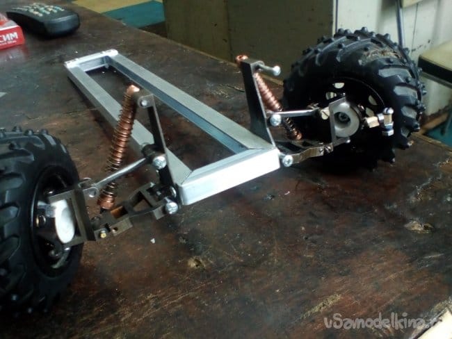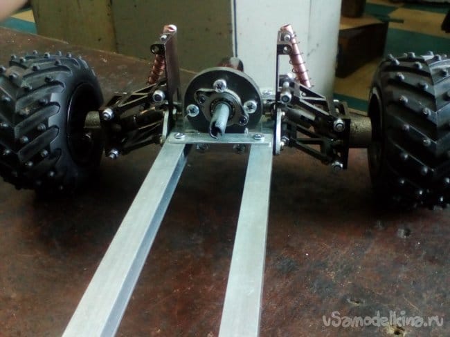 Получилось довольно крепко. задние ступицы были вырезаны из стали. тоже с подшипниками.