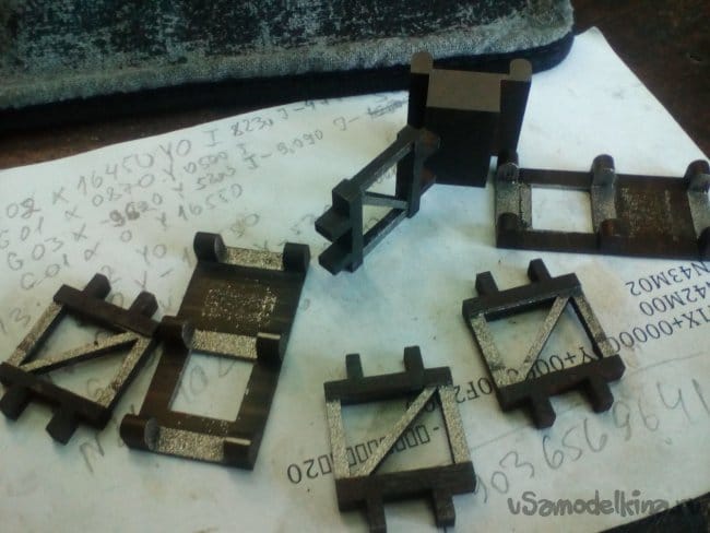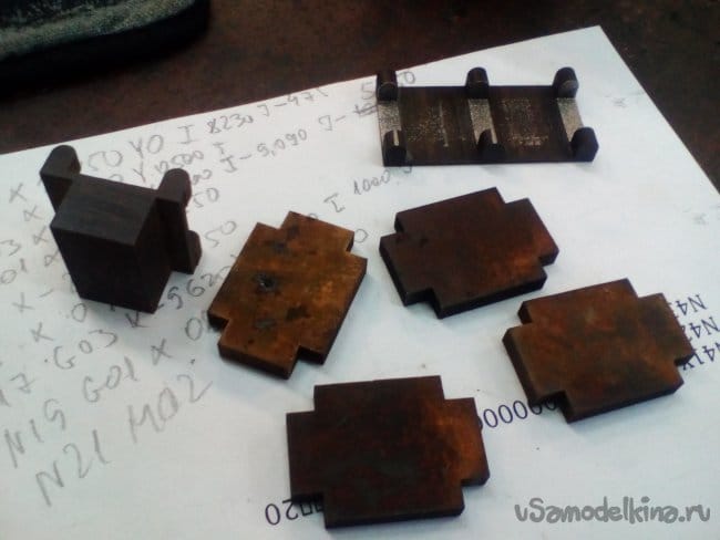 Все элементы подвесок были выпилены из обрезков стального листа 5мм толщиной. И в этом мне сильно помог мой станок. Хоть у меня и был доступ почти ко всем металлорежущим станкам, я старался больше делать руками или обходился одним своим. В любом случае, то, что было сделано на станке, можно было сделать и вручную, правда затратив больше сил и времени. Итак, смоделировав подвески в Компасе, я выпилил их из металла, просверлил отверстия под оси рычагов, крепежные места и под амортизаторы. собрал стойки, рычаги и ступицы в одно целое, все работало как надо.