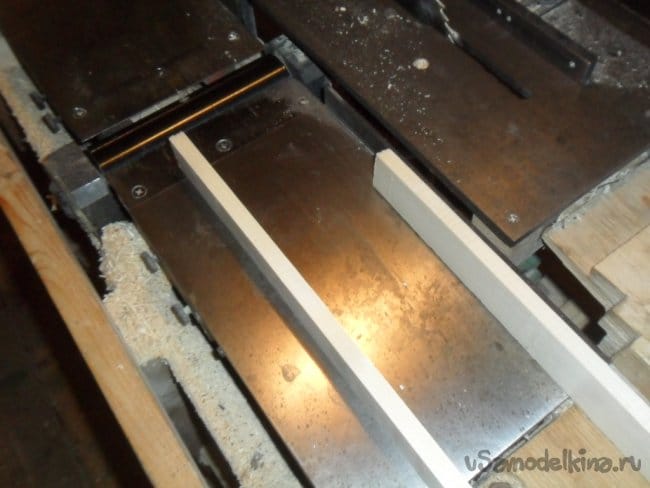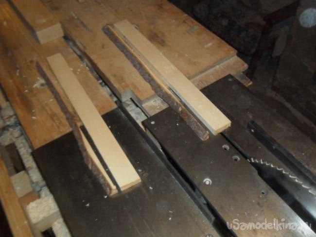 Через пильный диск пропускаем доски. В результате получаем рейки шириной 3,5 см. Боковые стороны реек также строгаем.