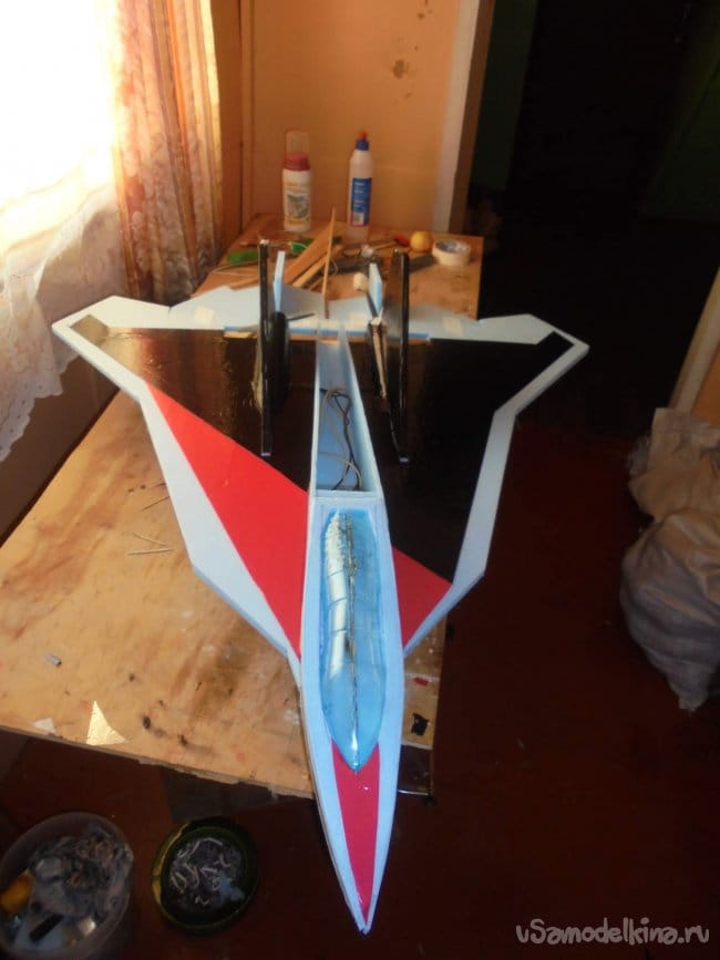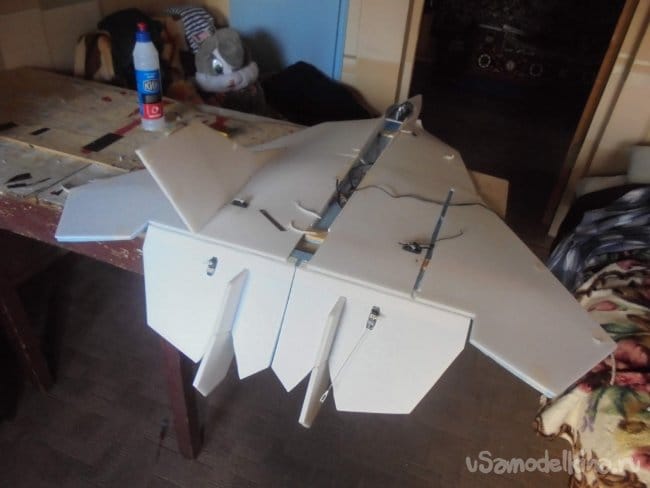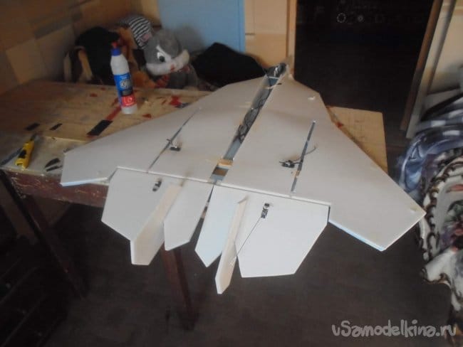 Борьба продолжается! Осталось поставить сервомашинки, подсоединить тяги и можно лететь.