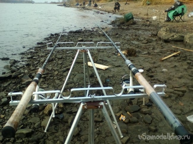 Немного предыстории. На некоторых участках нашей реки берег настолько каменистый, что воткнуть в него обычную подставку под удилище практически невозможно. А когда этих самых удилищ несколько, это превращается в весьма досадную проблему. И как назло, эти участки самые уловистые.