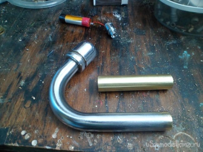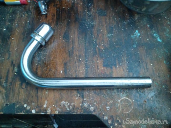 Из советского водопроводного крана я окрутил "гусак" из которого я буду делать сам корпус своей электронной сигареты . Для удобства пока деталь большая, я зачистил одну сторону от хрома а затем отрезал нужной длинны запчасть для корпуса своей самоделки.