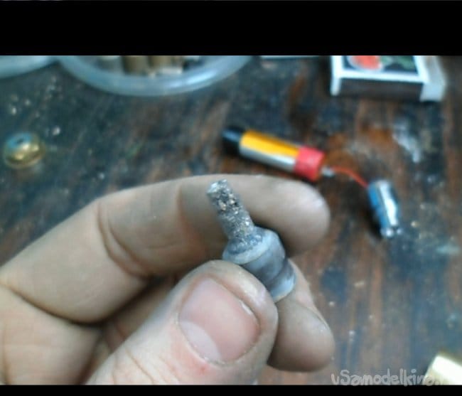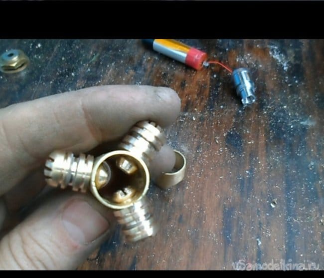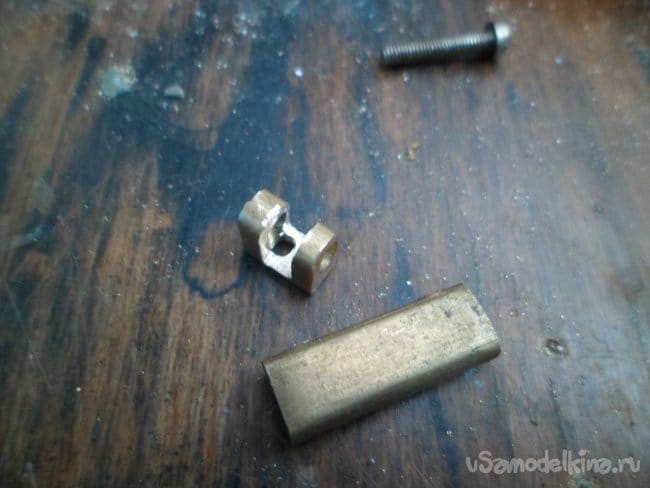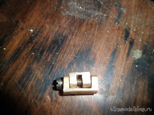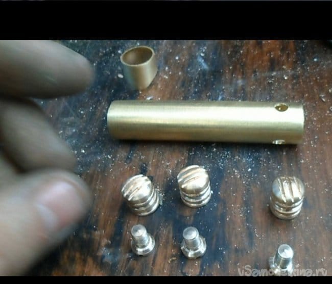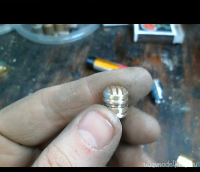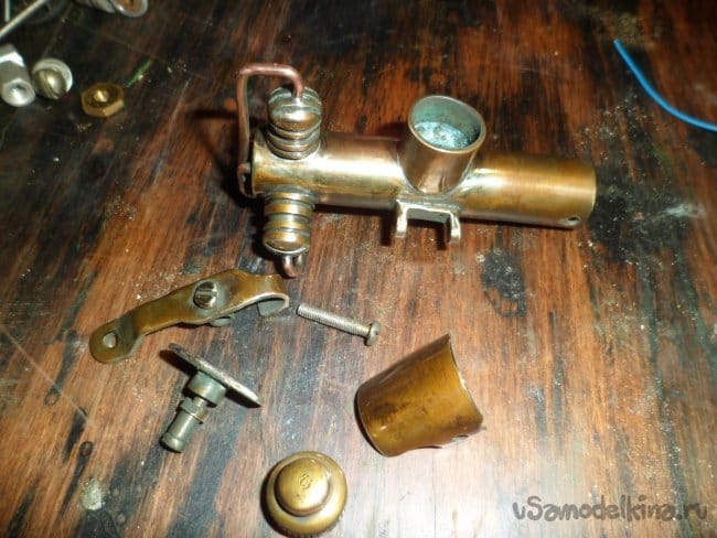 После чего начал изготавливать псевдо цилиндры двигателя, для этого я взял три запчасти из советской контактной группы и при помощи электродрели и надфиля придал им аля форму цилиндров двигателя