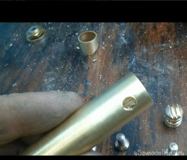 Цилиндры на месте , теперь из шайбы советского происхождения !)))) (честно не знаю где она стояла и какую роль выполняла ) которая идеально подошла по размеру внутреннего диаметра трубки " гусака " в которой просверлил три отверстия для будущего " бензопровода " который я изготовил из двух миллиметровой медной проволоки.
