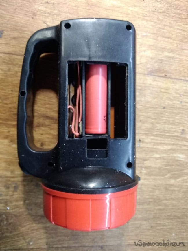 Для начала я разобрал фонарик, удостоверился, что во внутренней полости можно поместить, вместо 3 батареек АА, один аккумулятор типа 18650.