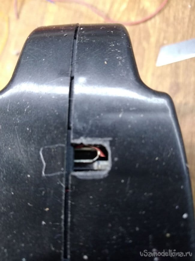 При сборке обнаружил, что и во второй половинке корпуса надо сделать продолжение отверстия для разъёма зарядки.