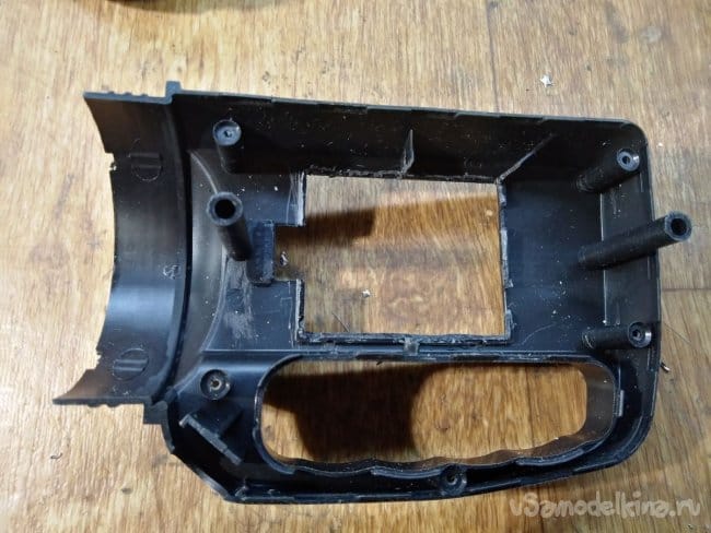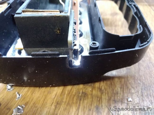 Потом жалом горячего паяльника вырезал(выплавил) отсек батарей. Удалять его надо аккуратно, что бы не подпортить место посадки крышки батарейного отсека. Наплывы пластмассы удалил канцелярским ножом.