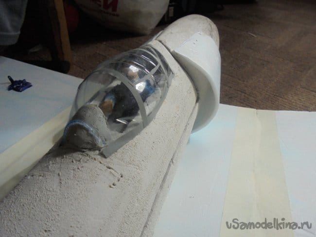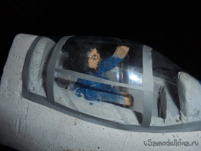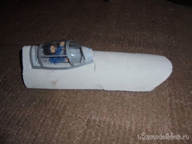 Кабина с пилотом монтируется на съёмной крышке. Делается из пластиковой бутылки, утеплителя и раскрашивается.