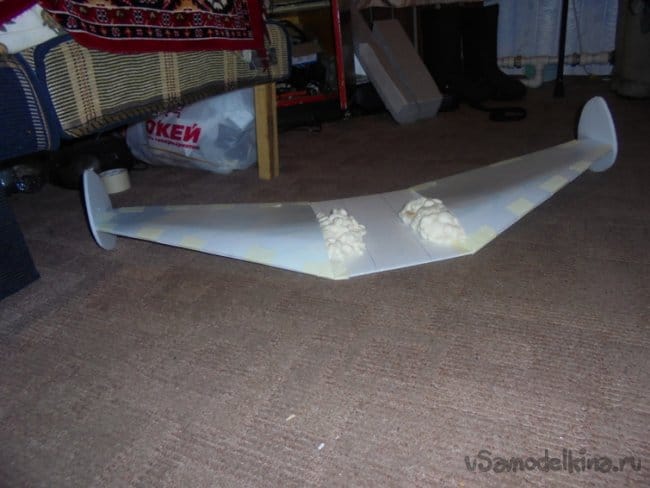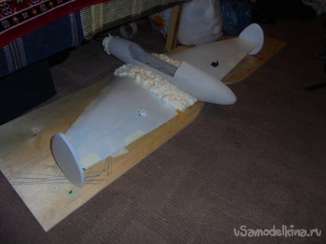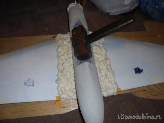 Фюзкляж при монтаже, укреплён строительной пеной.