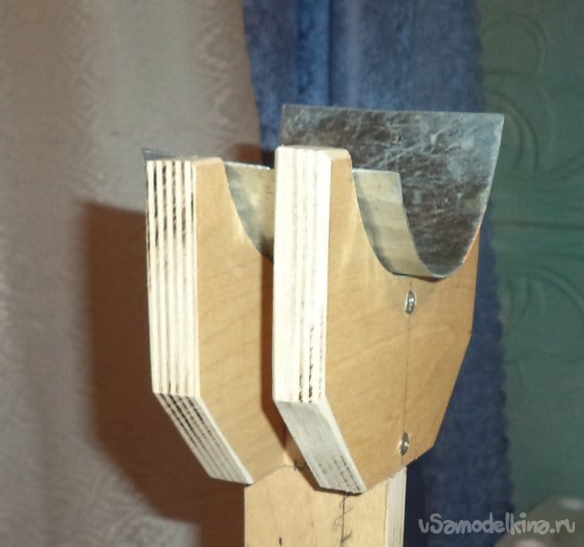 2. Шурупами к радиусу ложе вентилятора крепим согнутую жестяную пластину.