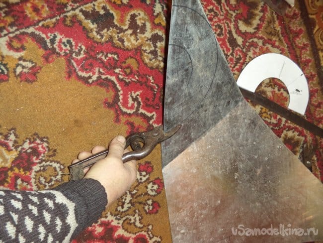 1. Ножницами по металлу из жести вырезаем прямоугольник.