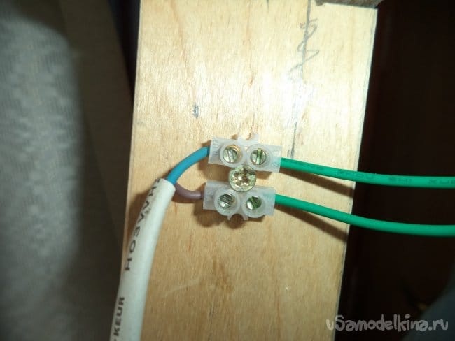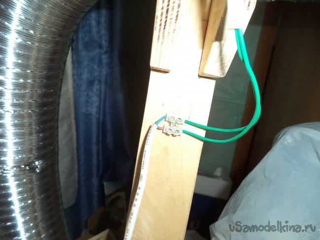 1. Свободные концы проводов вентилятора для вытяжки и провода с вилкой вставляем в разъемы клеммника и зажимаем винтами.