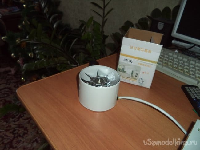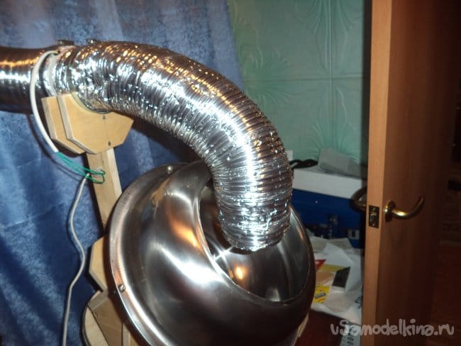 Машина работает от вентилятора для вытяжки диаметром 100 мм.
