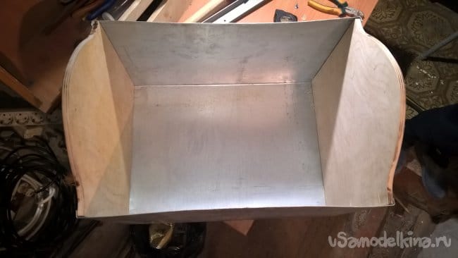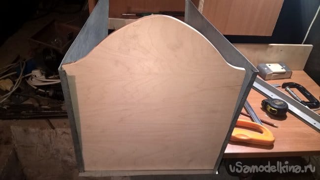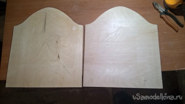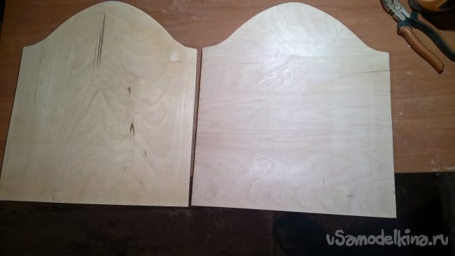 Для начала я разметил на фанере боковые стенки, а потом распилил.