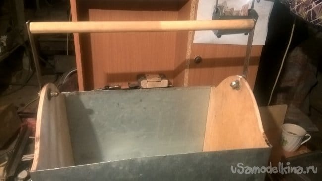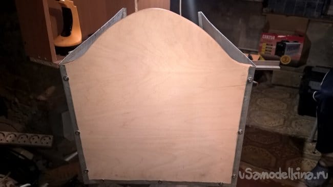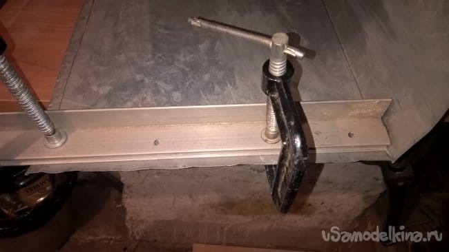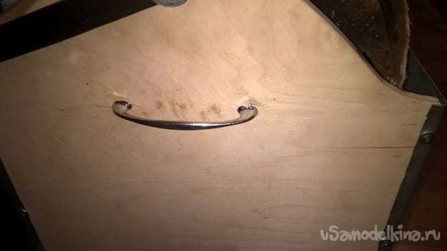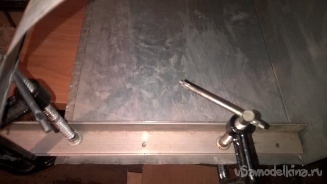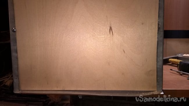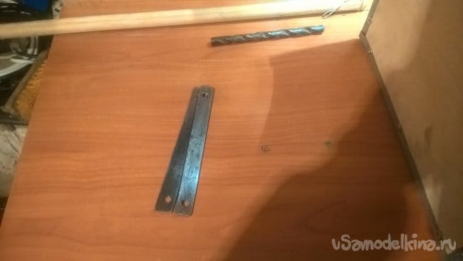 Взял железные пластинки и просверлил в них отверстия, после чего прикрутил их к боковинам.