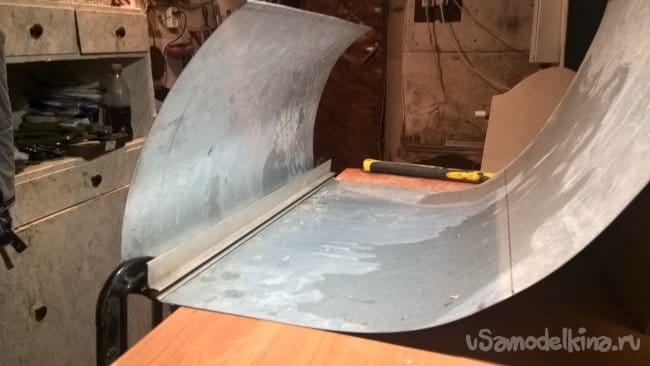 Отметил от сторон (края которых загибали) по 30 см и загнул под углом 90 градусов.