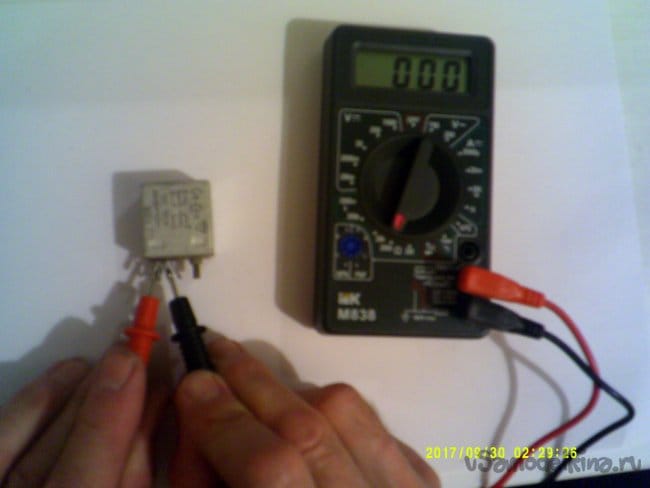 Проверяем работоспособность реле, подключив на его обмотку питание +12в от любого блока питания или автомобильного аккумулятора, должны замкнутся контакты реле 1-3 и 4-6.